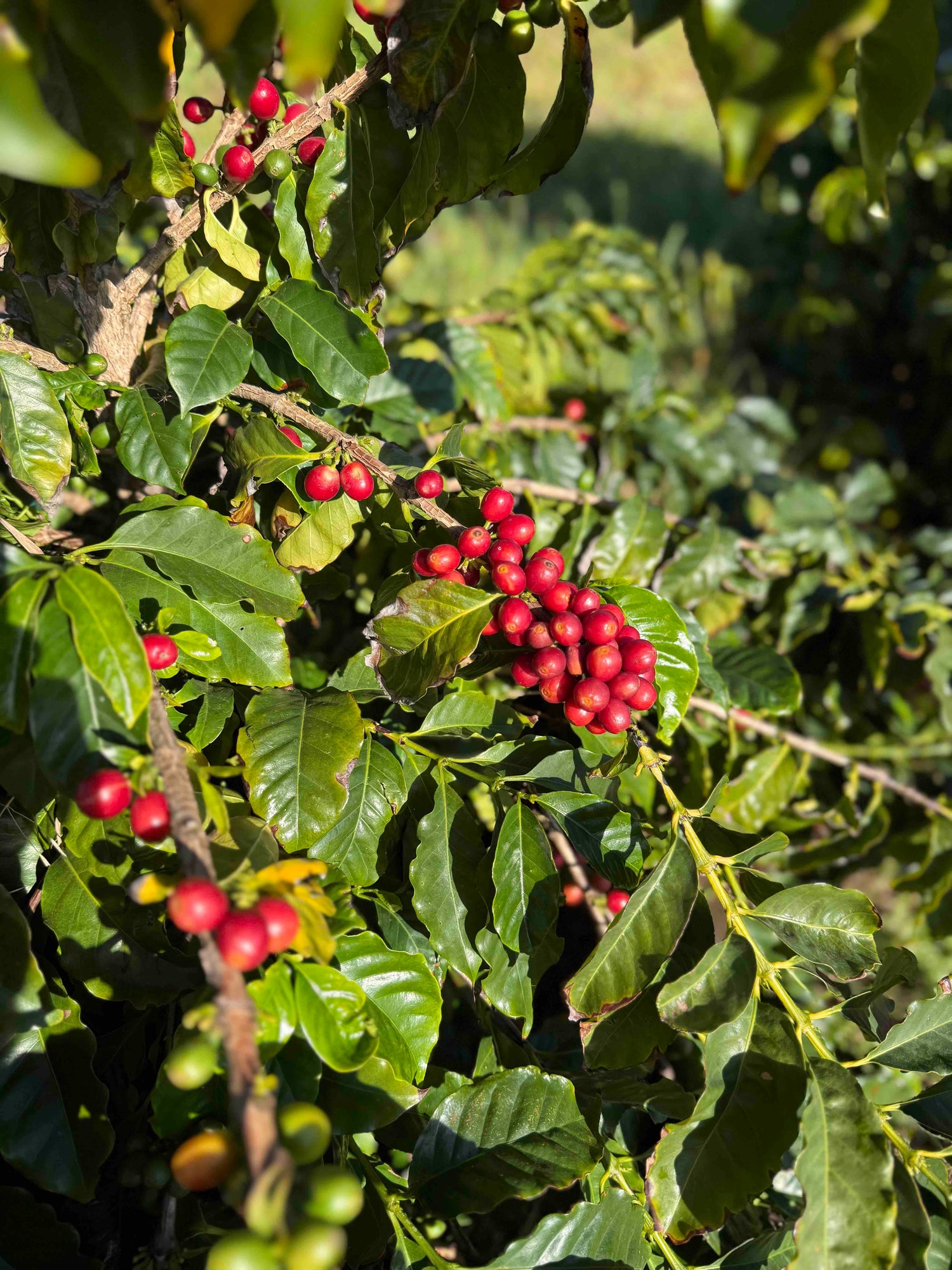 Our Caturra Roja coffee trees are now entering their third year, and we’re thrilled to share this exciting step in our journey. Gordon—now retired and farming full-time—is carefully hand-picking the ripe, red coffee cherries, removing the cascara, and sun-drying the beans to perfection.